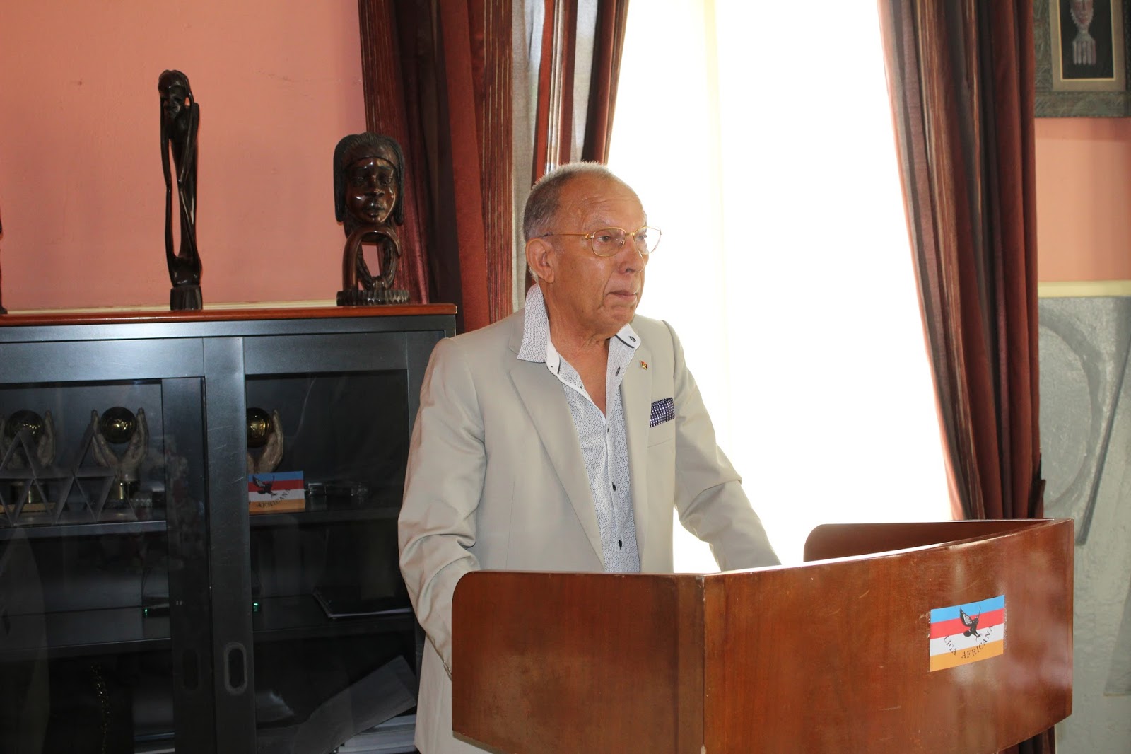 A Liga Africana apresenta, pela nossa voz, o seu regozijo pelo faco de havermos sido convidados para associarmo-nos à este acto de apresentação pública da quarta obra literária romanesca e em prosa, desta vez intitulado “Descompasso”, da autoria do Excelentíssimo Senhor Juiz Conselheiro do Tribunal Constitucional do nosso país, Dr. Onofre dos Santos.