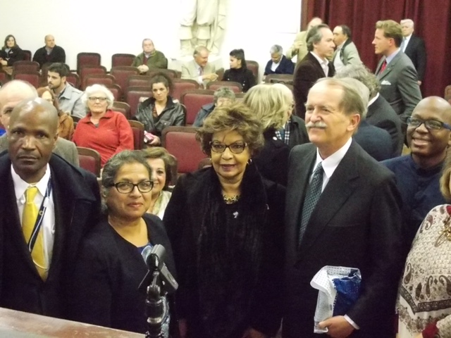 | O Presidente da Liga Africana, Professor Doutor Carlos Mariano Manuel, ladeado por: (à direita) Manuel Lapão - Director da Cooperação da CPLP, Mário Augusto - Ministro Conselheiro da Missão Permanente de Angola na CPLP e (à esquerda) Gabriel Baguet Júnior - Sócio da Liga Africana residente em Portugal, Dr. João de Deus - Director da FESA, Victor de Jesus Fortes - Secretário-Geral da Liga Africana e o representante do Fórum da Sociedade Civil da CPLP. — em Lisboa. |